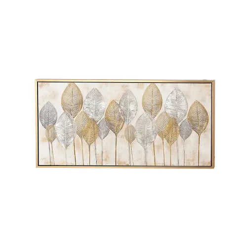 CUADRO RECTANGULAR MARCO DORADO/HOJAS